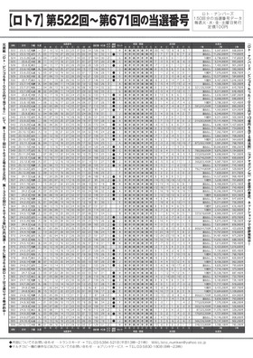 【ロト7】第522回~第671回の当選番号データ